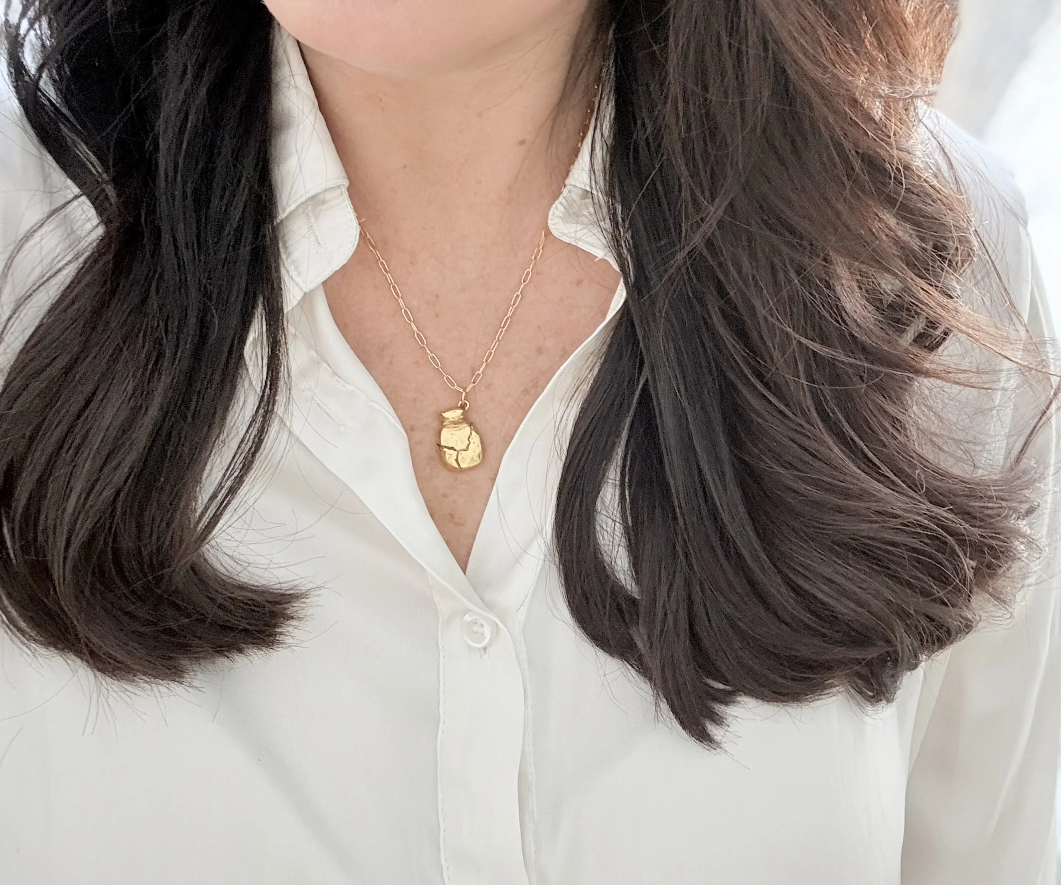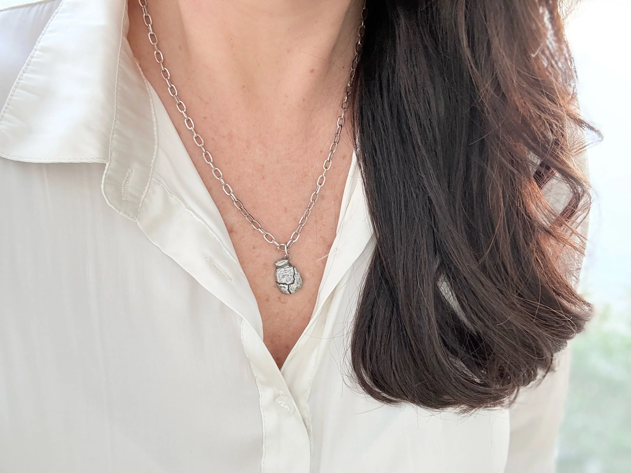 Chain Options: Antiqued Silver Rolo or 12 k Gold-Finish Flat Rectangle Link
